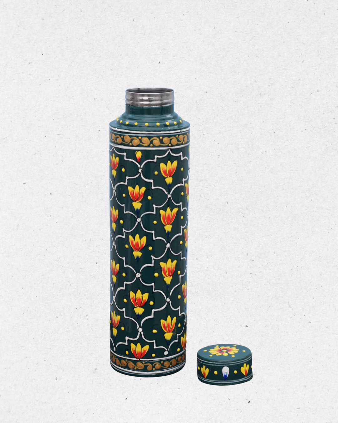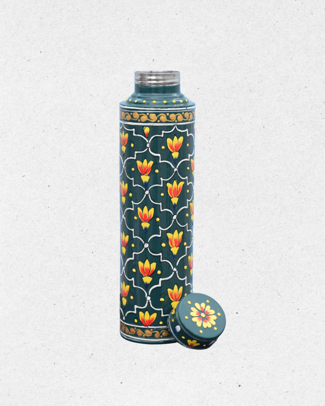 Made from durable stainless steel, this eco-friendly and reusable bottle is not just functional but also a piece of art you’ll love to carry. Whether for daily hydration, gifting, or as a collectible, it reflects the beauty of Indian craftsmanship in every stroke.