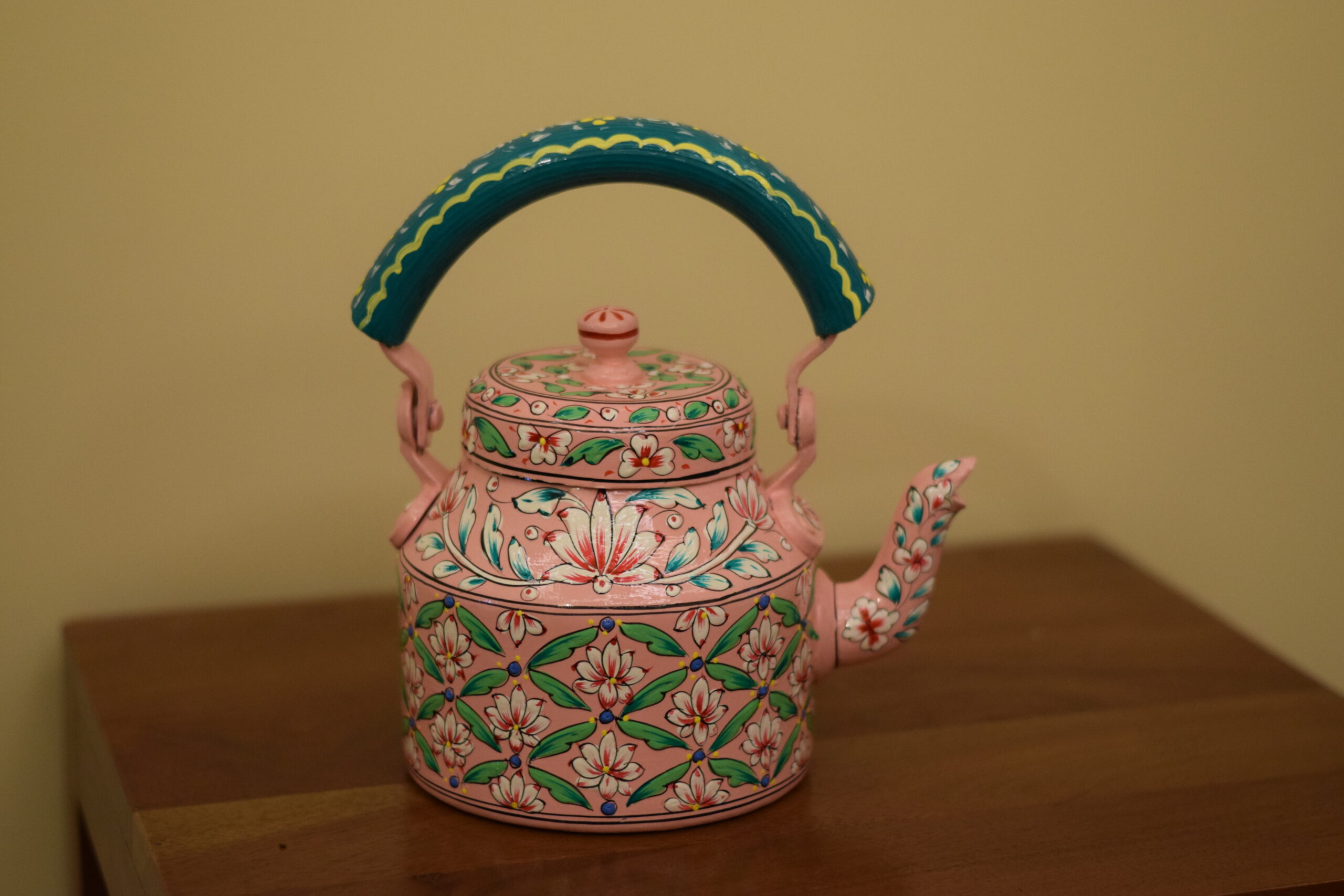 Perfect as a table centerpiece, a quirky serving accessory, or a decorative accent for your kitchen and living space, this kettle brings together tradition and artistry. It also makes a wonderful gift for housewarmings, weddings, and festive celebrations. A blend of functionality and décor, this hand-painted kettle is sure to capture attention wherever it is placed.